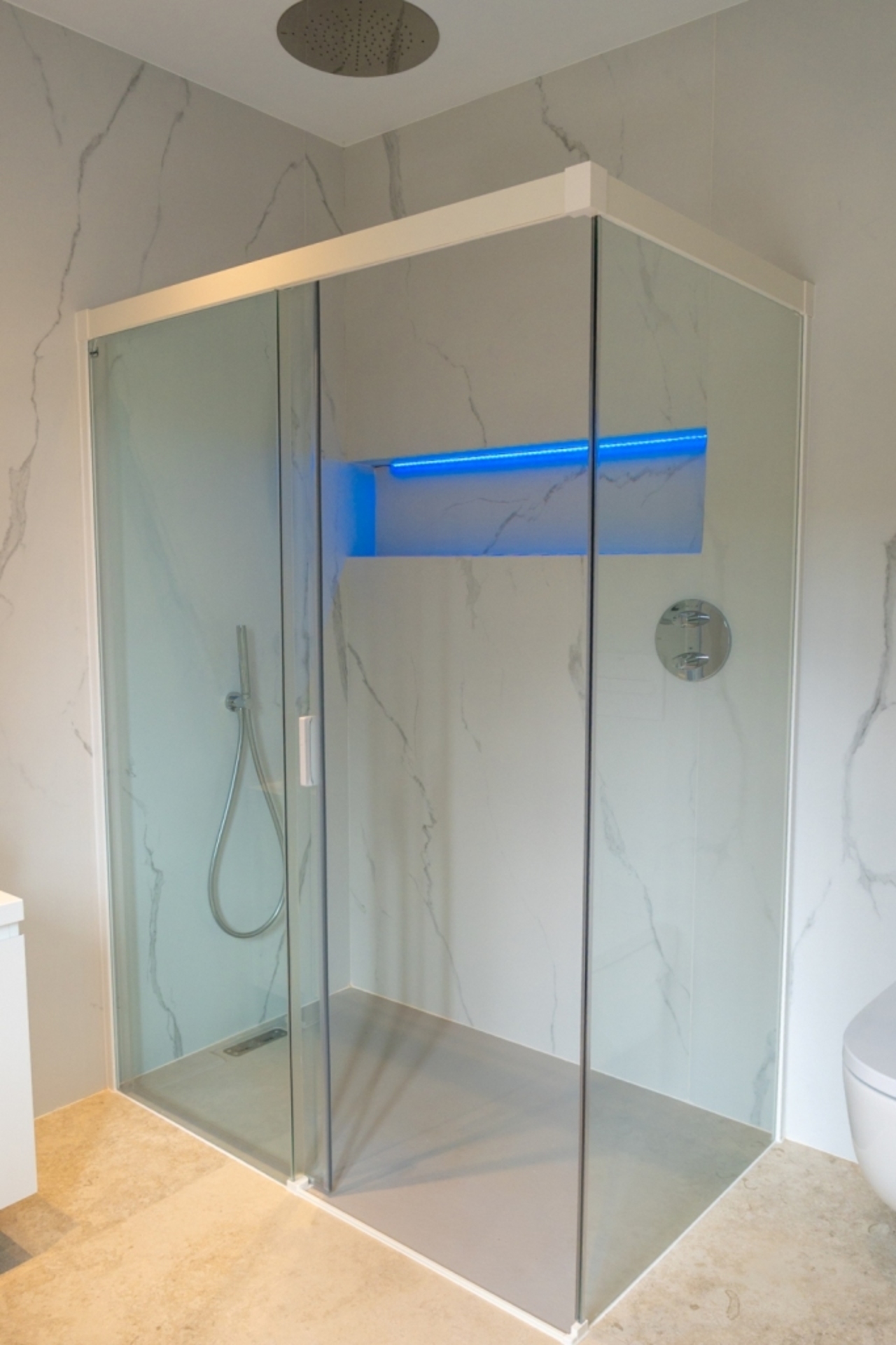 The villa is spread over two floors. On the ground floor, there is a garage for two cars with direct access to the house, a bedroom with en-suite bathroom and walk-in wardrobe, a laundry room, a guest toilet and a multifunctional room suitable as a spa or workspace. The upper floor has a living-dining room with a modern, fully equipped kitchen and direct access to the terrace with heated swimming pool. Adjacent to this floor are three bedrooms, including the master bedroom with en-suite bathroom. All bedrooms have access to the terrace. Outside there is a low-maintenance garden and an automatic gate.