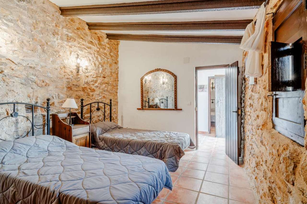 Full of elegance and exclusivity spread over 650sq.m, the Finca is surrounded by a magical natural landscape and 300 years of rich history. Each of its 8 rooms plus 2 apartments have their own individual character thus forming a special and incomparably harmonious unit. Embedded in this typical landscape is the distinctive architectural style of the property which is light brown like the surrounding terrain, as well as the rocks on the walls. The architecture of the walls and the ceilings is also harmonious with the furniture and radiates a warm and comfortable atmosphere.