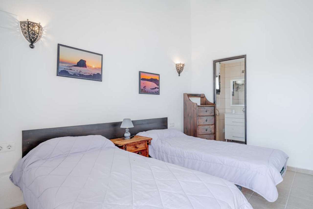 Outside, there is the pool and an adjacent Mediterranean garden of citrus and tropical fruit trees. Both are isolated thereby affording you the privacy you need to unwind and relax. After a refreshing swim, the sun loungers on the pool terrace are ideal for sunbathing or taking a nap outdoors. The straw pavilion has style and invites you to enjoy a refreshing sangria. Of course the field offers the possibility of a cozy barbeque in the spacious barbeque area. You can also choose to enjoy a front row seat to watching the picturesque sunset.