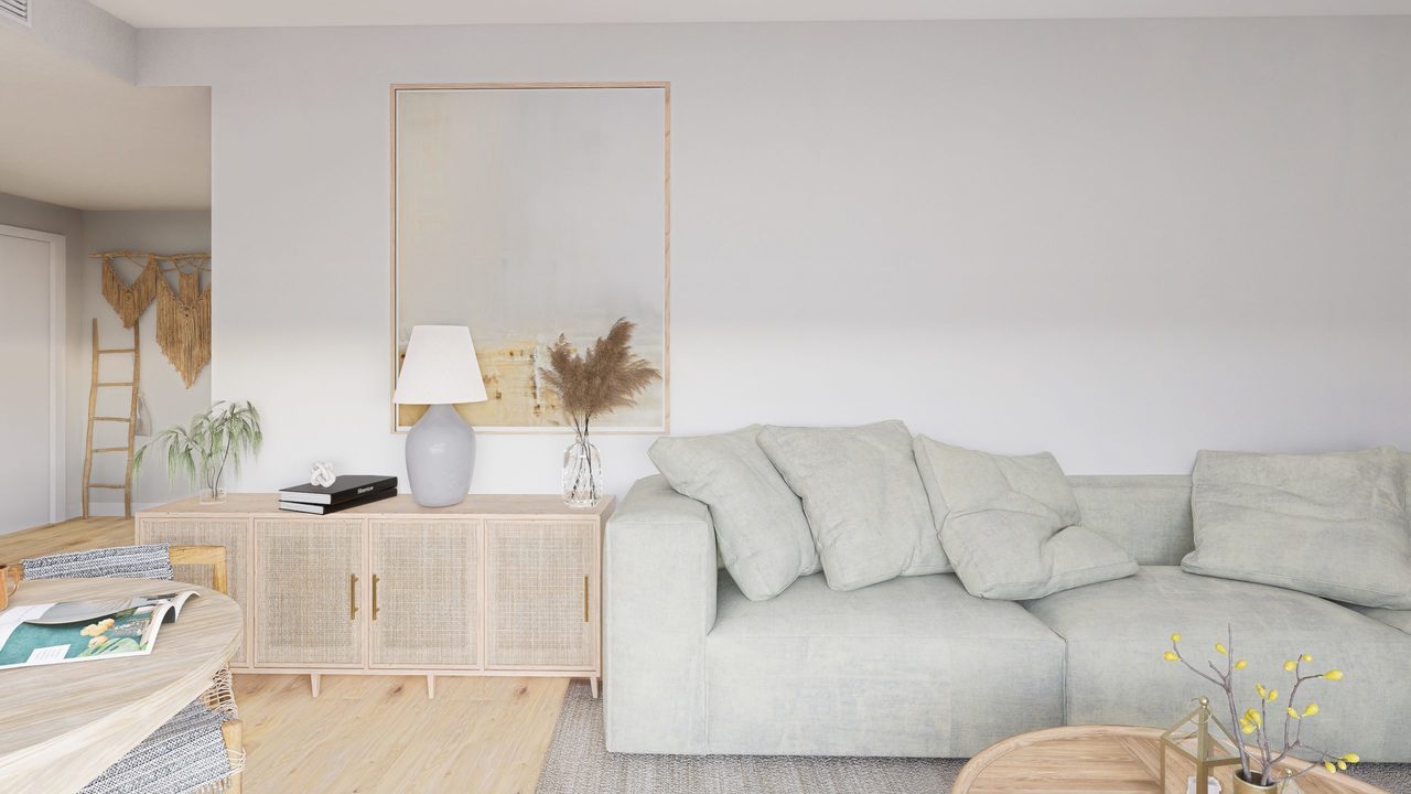 The flat features built-in wardrobes, electric shutters in the sleeping areas and double-glazed PVC sash windows. To ensure a pleasant temperature all year round, both underfloor heating and air conditioning hot/cold are installed based on an energy-efficient heat pump. The property is further equipped with a video intercom for added security and convenience. The residential complex consists of three modern buildings with different housing types, ranging from flats with garden on the ground floor, flats with terrace on the first floor, to the exclusive duplex penthouses on the second floor. To finish your home, you can choose from three styles: Contemporary, Timeless or Nature. The renders used reflect the ‘Contemporary’ style.