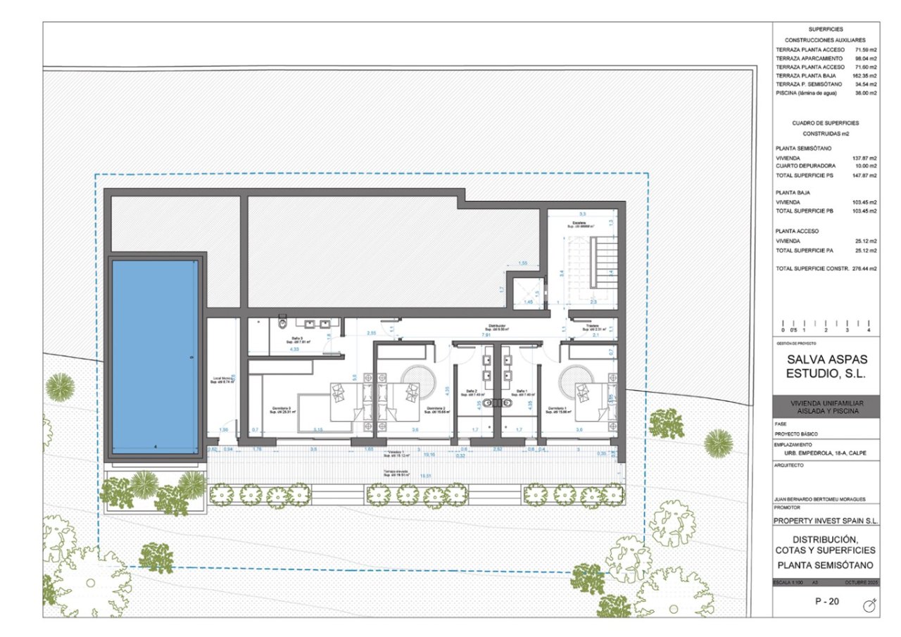 If you would like to live in a house with 180º views of the sea and the rock of Calpe, don’t hesitate and take a look at this project.A18 is a project designed with the aim of taking advantage of the luminosity and panoramic views of the Mediterranean offered by the south facing plot.A construction of 3 bedrooms, 3 bathrooms, living-dining room with open kitchen, swimming pool and much more will make this project your dream come true.Do not hesitate and contact us for more information and to organize a visit.