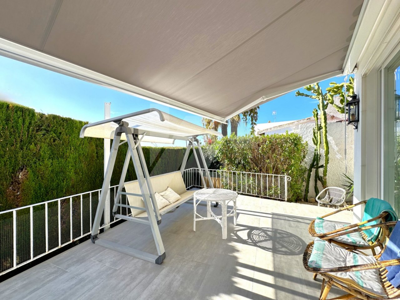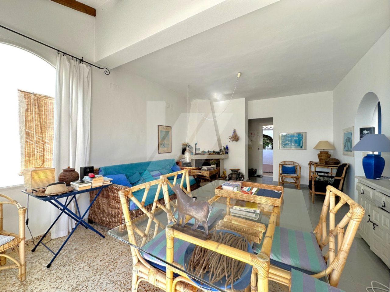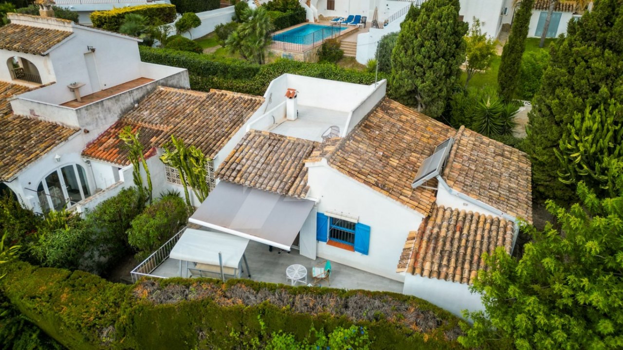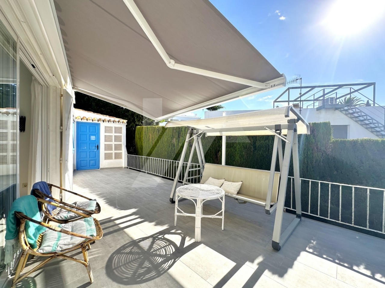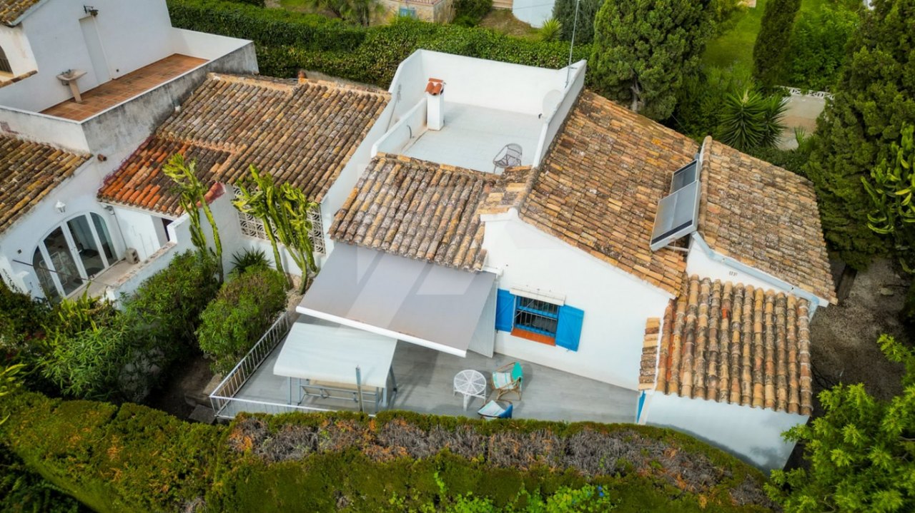 Bungalow with sea views in Pla del Mar.Unique opportunity on the Costa Blanca: bungalow within walking distance to the charming village of Moraira with sea and bay views. Close to beaches, coves, restaurants, and shops. The property is located on a 244 m² plot, ideal as it is all on one level and features two outdoor terraces: one at the charming covered entrance and another at the front where you can enjoy the tranquility of the area, plus a third terrace on the upper level with unmatched views. With over 80 m², it is perfect for families or as a vacation rental investment.On the main floor, we find a large living room with a fireplace, independent kitchen, two double bedrooms, two bathrooms (one en-suite), and two spacious terraces, all equipped with awnings. The upper floor offers a large terrace with spectacular views of the sea and the marina, as well as a private covered terrace of over 25m² next to the garden.
