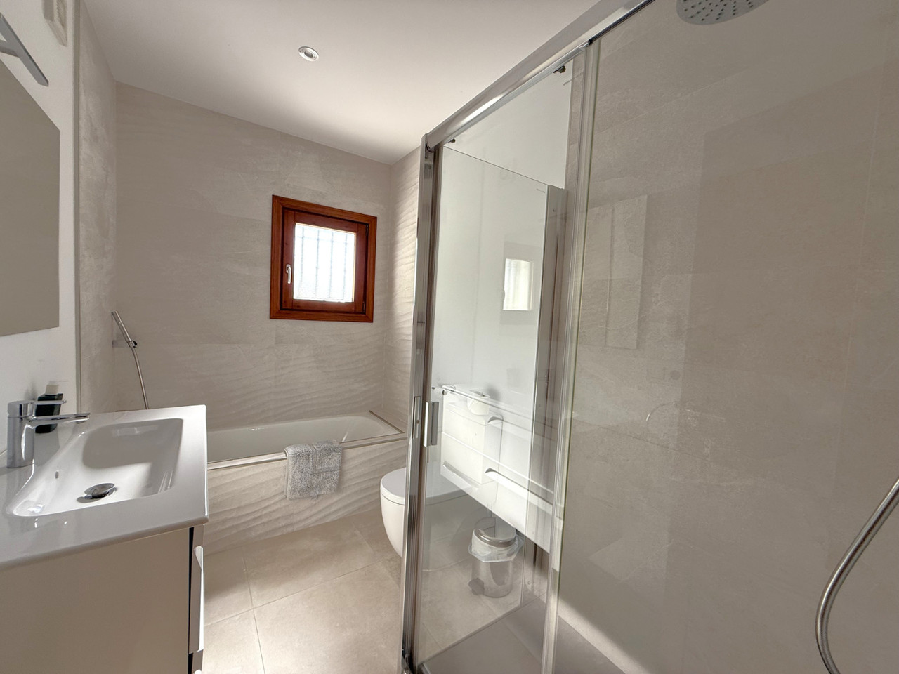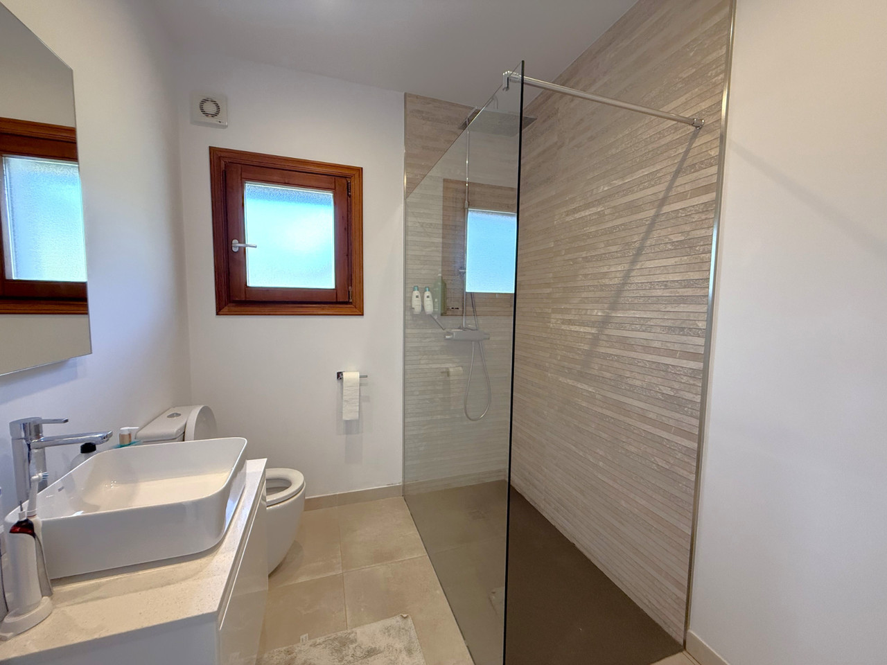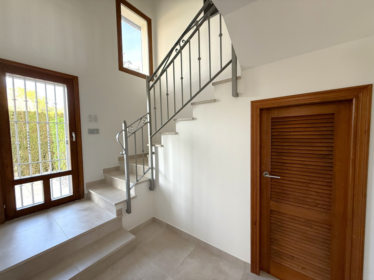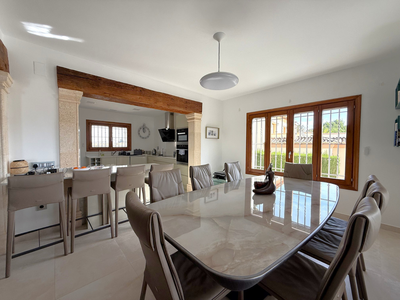 A magnificent, south facing, year 2010, luxury villa built in a style incorporating an imaginative pastiche of design facets from the whole of the Mediterranean region. Amongst the many traditional features are aged oak beams throughout the property, fabulous Tosca sandstone columns and plantation style shutters on the poolside bedroom windows and carefully chosen ceramics to complement the traditional feel. This superior property boasts spectacular views over the surrounding countryside with the Mediterranean Sea in the near distance and is enviably located within walking proximity of the tapas bars and restaurants of El Portet and the shallow waters of its fabulous sandy beach. Electric gate takes you to the ample driveway with two covered parking spaces. Superbly renovated throughout. The main floor has a large living area with a centred log burner and dining area with an open plan kitchen and adjacent pantry. The modern kitchen is perfectly equipped with Miele appliances. Patio doors from the lounge to a spacious covered terrace from which you can enjoy the wonderful open views over the valley and the sea. Also on this floor is the master bedroom ensuite and another double bedroom. Also a guest cloakroom. A stylish interior staircase takes you down to three double bedrooms of which one is a master ensuite with walk in wardrobes. Also another bathroom for the two rooms to share. All three bedrooms have access to the pool terrace with its 8 x 4 heated pool. A fantastic utility room and a huge store room. Also access to the outside area from a side door before coming down to the bedrooms. The pool is heated through an air recovery system and so is the hot water. Electric blinds throughout and two separate split systems. And the best of it all…walking distance to the fabulous El Portet beach! Prime villa in a prime location.