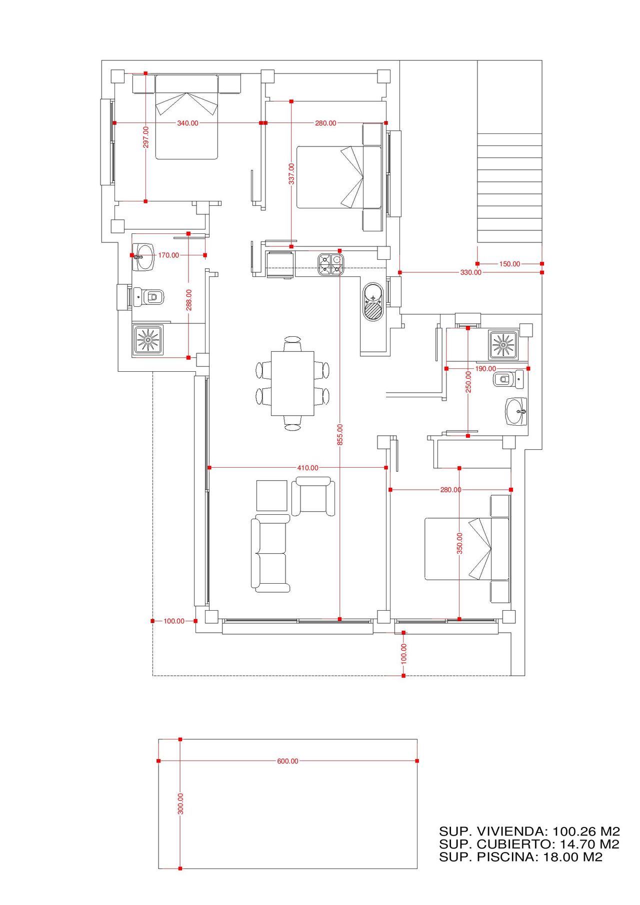 Modern 2-bedroom house project on a 725 m² plot with mountain views. Built area of 92 m², featuring a spacious living/dining room, open-plan kitchen, 2 bedrooms, and 2 bath…