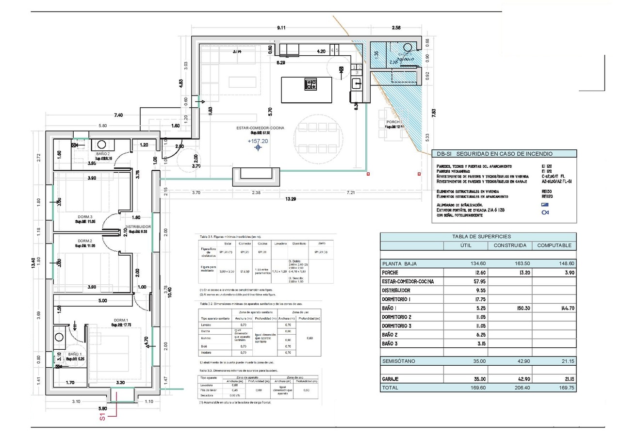 Villa under construction in Benitachell will be completed in 14–16 months and offers a southeast orientation with open views. It is located 3.3 km from the village centre and 9.3 km from the beach, and features several terraces, including covered ones, a garden, a private pool, an outdoor kitchen and a garage for two cars. The villa is equipped with underfloor heating, hot and cold air conditioning and double glazing. Inside, it contains a living room, a dining room, a kitchen, three bedrooms, two bathrooms—one of them en-suite—and an additional exterior bathroom
