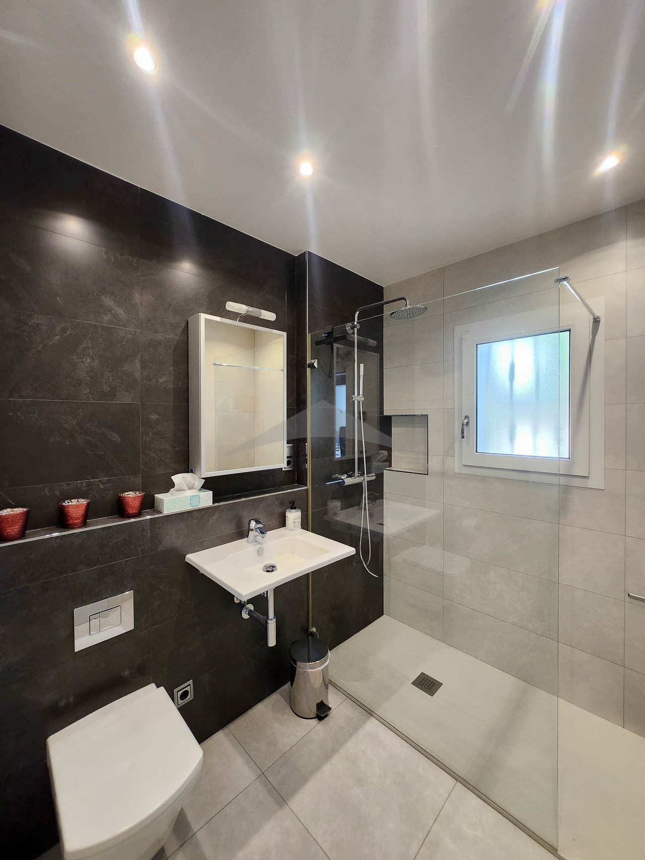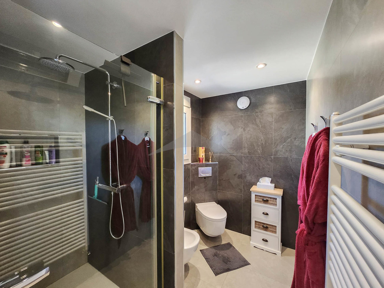 One of the villa’s key highlights is its impressive pool house, fully equipped and suitable for both summer and winter use, featuring a bar, plancha, and grill, creating a true outdoor living space. The heated saltwater swimming pool includes an integrated electric cover. A jacuzzi, an outdoor shower, and a storage area for pool and garden equipment complete this wellness area.