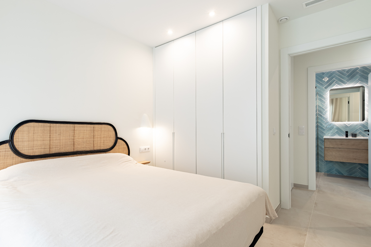 In the exclusive San Jaime neighborhood, directly adjacent to the Benissa golf course, lies this charming Ibiza-style new build villa (2025). The property offers 161 m² of living space on a generous plot of 1002 m² with a western orientation and stunning views. The villa features a bright open living area, modern kitchen, three bedrooms, and two luxurious bathrooms. Outside, you can enjoy multiple terraces, an elegant swimming pool, and a spacious rooftop terrace overlooking the golf course. A unique combination of tranquility, luxury, and Mediterranean lifestyle on the Costa Blanca.