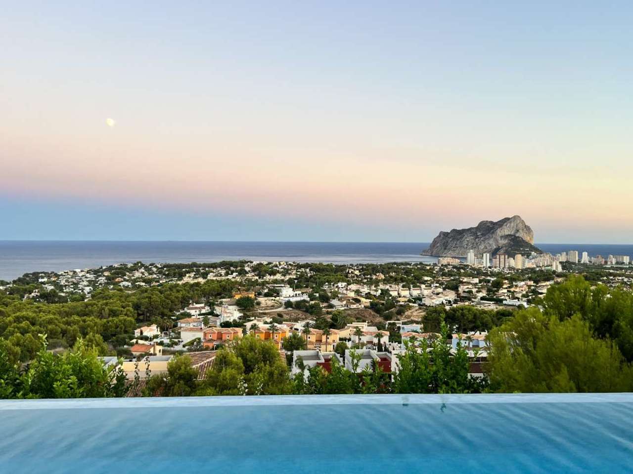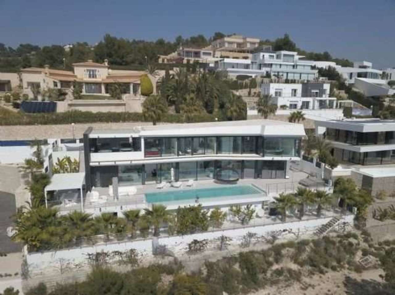 Magnificent luxury villa for sale in Calpe, located in the prestigious Gran Sol area, next to the exclusive Rincón de Galeno urbanisation, one of the most coveted residential enclaves on the Costa Blanca for its privacy, elegance, and spectacular open views of the Mediterranean. Situated just 2.7 km from the charming La Fustera Beach, with its renowned Ecological Promenade along the Benissa coastline, and 3.5 km from Les Bassetes Marina and Levante La Fosa Beach, this property enjoys a privileged location. The area combines absolute tranquility with excellent connections to the town centres of Calpe and Moraira, where you will find gourmet restaurants, exclusive boutiques, medical services, and a wide range of leisure activities throughout the year. The villa offers breathtaking 180º panoramic views of the sea and the majestic Peñón de Ifach, a natural icon of the Costa Blanca. Its south-facing orientation guarantees sunshine throughout the day and exceptional natural light in every room. Located on a quiet cul-de-sac, this property offers maximum privacy and serenity. Set on a magnificent 890 m² plot, the 560 m² of living space is distributed over two floors and a basement, all connected by a panoramic glass elevator and an elegant designer marble staircase. The upper floor features three spacious bedrooms, each with an en-suite bathroom and open sea views. The master suite incorporates a sophisticated freestanding floating bathtub, transforming the bathroom into a true private wellness space. The main floor boasts a spectacular open-plan area of over 150 m² that integrates the living room, dining room, and designer kitchen with a central island, creating a contemporary and elegant ambiance ideal for entertaining. This area opens directly onto a stunning 150 m² terrace featuring a 15x4 meter heated infinity pool, a jacuzzi, a bioclimatic pergola, a summer kitchen with a barbecue area, an outdoor dining area, and an exclusive chill-out space designed for enjoying the Mediterranean lifestyle in complete comfort. The lower level offers an additional luxury experience with a hidden multipurpose room, a fully equipped gym, a sauna, a climate-controlled wine cellar, an additional bedroom with an en-suite bathroom, and various technical and service spaces. This villa stands out for its avant-garde architecture, large floor-to-ceiling windows, abundant natural light, and top-quality finishes. It is equipped with underfloor heating, ducted air conditioning via a highly efficient aerothermal system, an 8 kW photovoltaic installation, high-end exterior joinery, exclusive designer interiors, LED lighting, an alarm system with cameras, and humidity control. The garden, meticulously designed to integrate seamlessly with the contemporary architecture of the home, offers an elegant and low-maintenance environment with an automatic irrigation system. The property also features a closed garage for two vehicles and ample private outdoor parking. An exceptional residence that combines design, technology, comfort, and exclusivity in one of the most privileged locations in the Mediterranean.