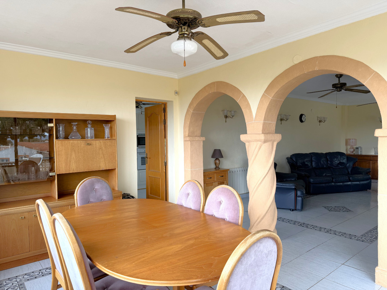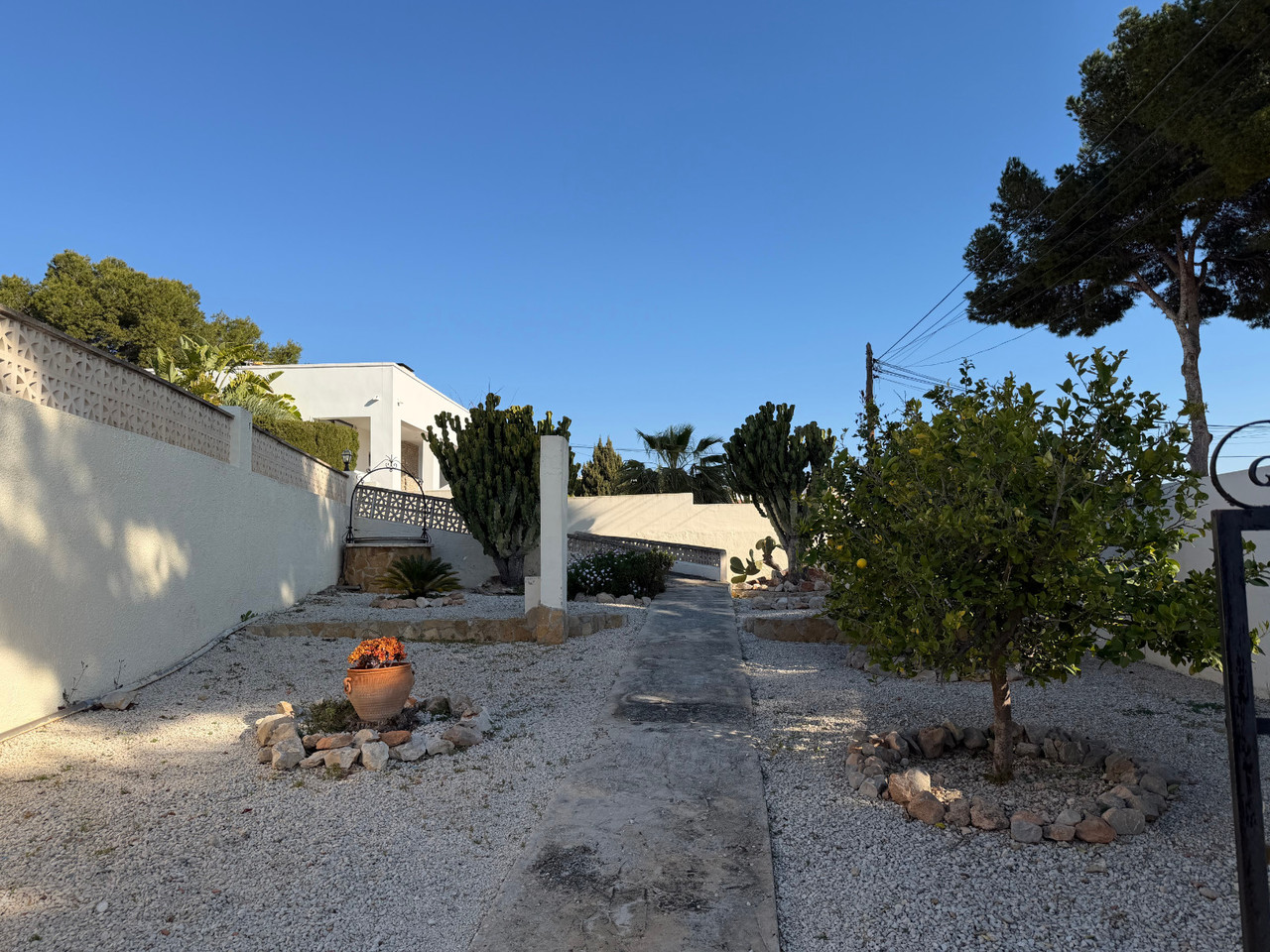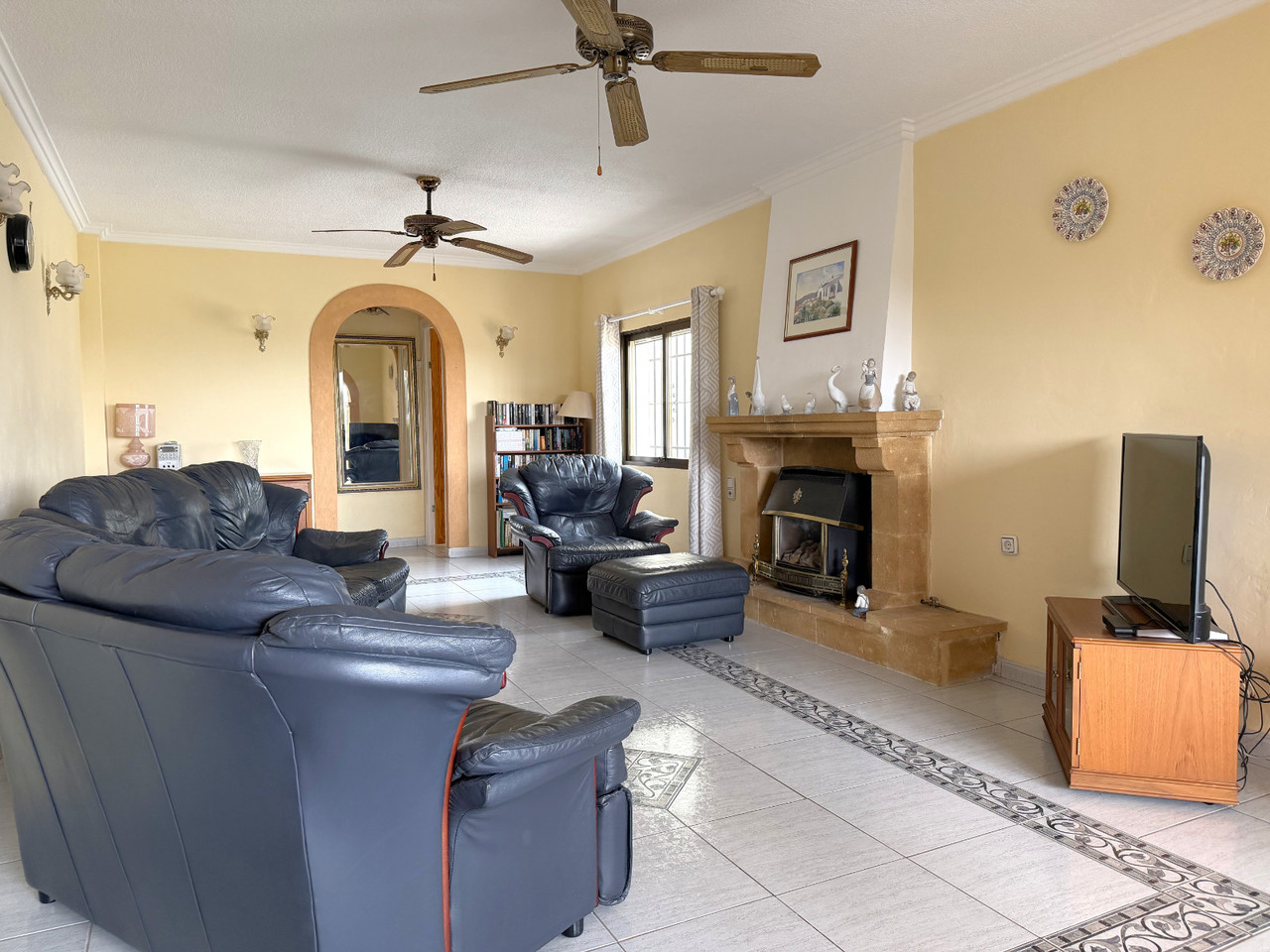Located in a quiet residential area within easy walking distance of Moraira, this well-maintained villa offers generous accommodation, excellent outdoor space, and great accessibility. Set on a completely flat plot, the property provides easy access and excellent usability, making it ideal for families, retirees, or as a holiday retreat. A gated entrance opens onto a private driveway with ample parking for several vehicles. On this level, there is also a substantial under build currently used for storage, offering excellent potential to be converted into a garage or additional accommodation if desired. A few steps lead up to an inviting terrace overlooking the 9 x 5 kidney shaped pool, surrounded by multiple terraced seating areas—perfect for relaxing, sunbathing, or entertaining guests. The villa is set on a flat plot and enjoys a lovely Mediterranean garden featuring lemon, lime, orange, and nispero trees, adding both charm and practicality. The entrance opens into a bright dining area, elegantly separated from the generous lounge by attractive archways. The large lounge features a centrally positioned gas fireplace, creating a warm and welcoming focal point. From the dining room, there is access to a fully enclosed kitchen, which also provides direct access to the rear of the property. Here you will find a specially designed wheelchair access, ensuring practicality and ease of movement. From the lounge to a hallway which leads to the sleeping accommodation, where a shower room is conveniently positioned between two double bedrooms. At the far end of the hallway, the master bedroom enjoys added privacy and benefits from its own en-suite shower room. Central gas heating and fans. Also a roof terrace from which you can enjoy wide open views and the sea. This property combines comfort, accessibility, and Mediterranean lifestyle in a highly desirable location close to all amenities and beaches. We have included some designs of how the villa could look like if you would like to do a renovation project.