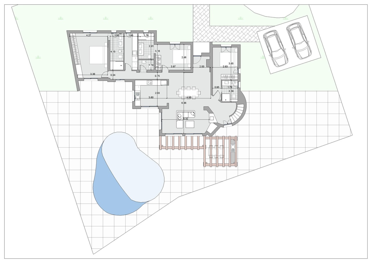 The property will be equipped with air conditioning through ducted systems and high-quality Technal aluminum frames. Outside, you will find spacious terraces, a swimming pool, and external parking.