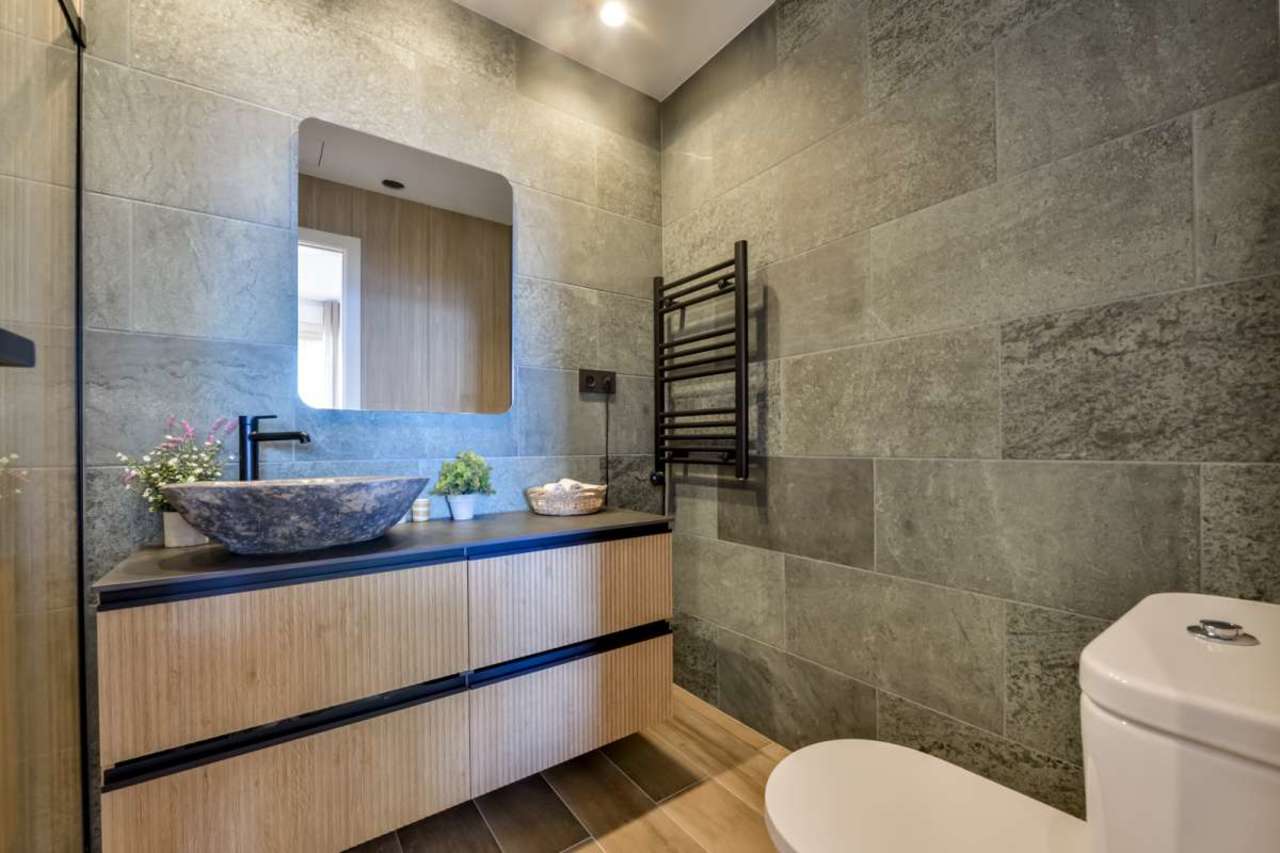 A bright, open-concept 36.71 m² living–dining–kitchen area forms the heart of the home, perfectly designed for entertaining with uninterrupted sea views. This level features three bedrooms, including a spacious 15.89 m² master suite, along with two contemporary bathrooms. Large openings allow natural light to flood the interiors, enhancing the sense of space and connection to the Mediterranean.Lower Level (Planta Baja)