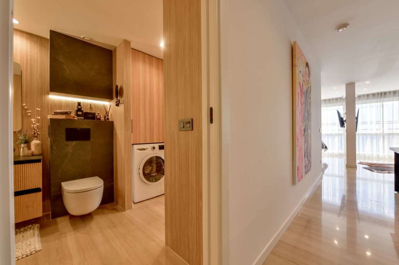The lower level offers a private retreat atmosphere with an additional 11.62 m² bedroom, an impressive 7.71 m² walk-in dressing room, and a secondary lounge area ideal for relaxation, remote work, or guest accommodation. Every detail — from the integrated shoe closet to the streamlined laundry zone — has been thoughtfully designed to support a seamless and comfortable lifestyle.Lifestyle & LocationStep outside and you are just moments from the sand. This vibrant yet exclusive coastal setting allows direct beach access for morning swims and sunset walks along the shore. Within walking distance, you will find a curated selection of quality bars, restaurants, cafés, and essential services. The property is set within a prestigious and well-maintained community, offering privacy and security while remaining immersed in the dynamic energy of the Mediterranean coast.Frontline properties in this location are limited and highly sought after, making this duplex not only a remarkable place to live, but also a solid investment opportunity in one of the Costa Blanca’s most desirable seaside enclaves.