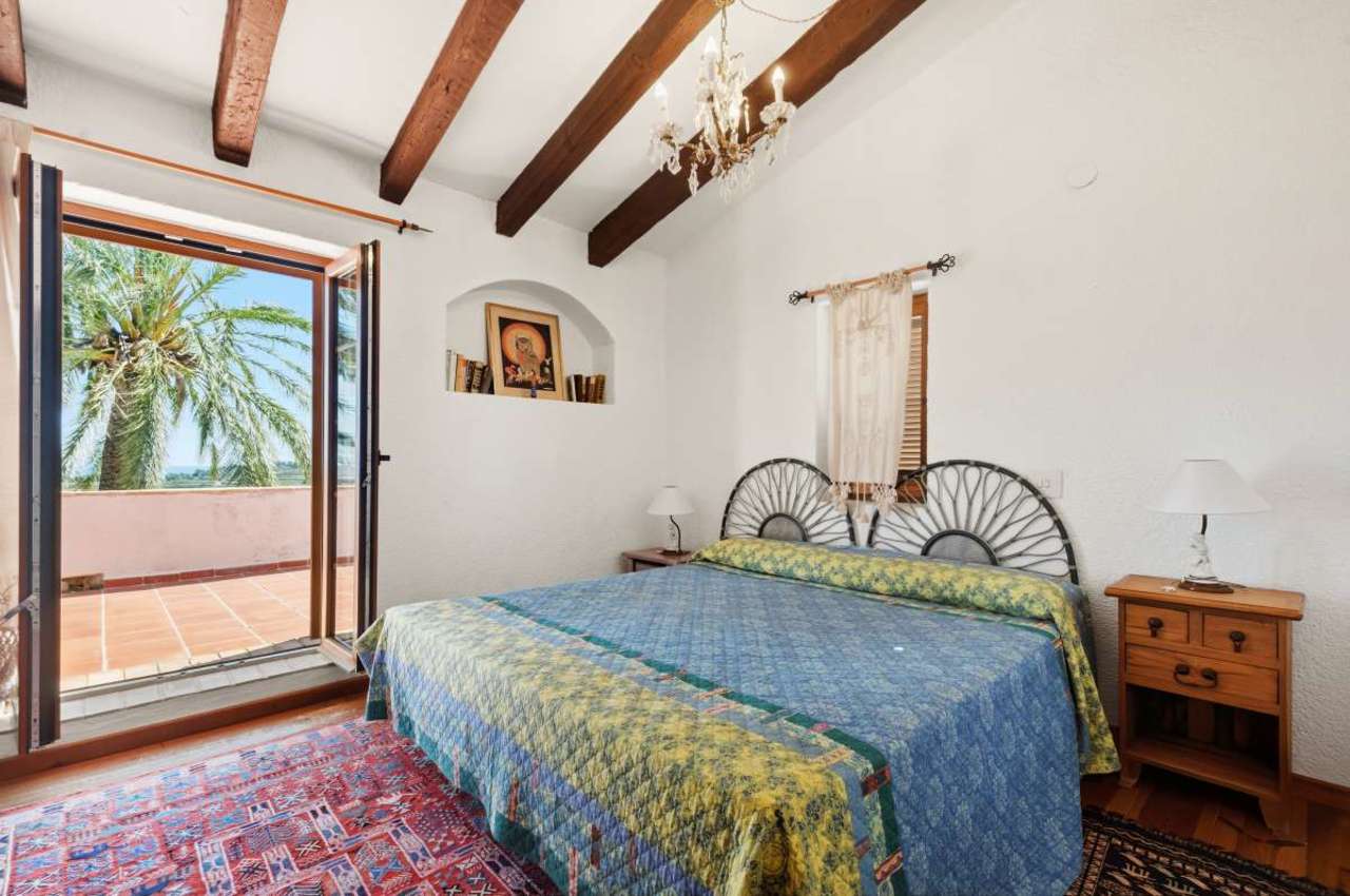 Set in a peaceful and private environment, this charming Mediterranean finca offers a unique combination of space, nature, and beautiful panoramic views of the sea, mountains, and surrounding landscape. The area is known for its tranquility, making it ideal both as a relaxing holiday retreat and a comfortable permanent residence. At the same time, it remains conveniently connected — the town, restaurants, and all essential amenities are just a short distance away, while the coastline can be reached within a few minutes by car.The property sits on a generous rustic plot of 5,800 m², surrounded by lush gardens, open green areas, and multiple chill-out spaces designed to fully enjoy the outdoor lifestyle. The south-facing orientation ensures sunlight throughout the day, especially around the private swimming pool, barbecue area, and terraces.The estate includes two independent houses: a main residence and a guest house, offering excellent flexibility for family living, hosting guests, or rental potential.The main house is distributed over two floors. On the ground level, you will find a spacious living and dining area filled with natural light, an additional cozy lounge with a fireplace perfect for winter evenings, and a rustic-style open-plan kitchen with direct access to a charming Mediterranean patio. This level also includes an office space and a guest toilet, as well as access to a terrace with open views.Upstairs, the property offers four bedrooms and several bathrooms, along with a large sunny terrace where you can enjoy the surrounding scenery in complete privacy.The guest house, also arranged over two levels, features an open-plan kitchen and living area on the ground floor, along with a bright and versatile space that can be used as a laundry room, studio, or workspace. The upper level offers three bedrooms and a bathroom, making it ideal for visitors or extended family.Outside, the finca is designed for enjoying a relaxed Mediterranean lifestyle, with a large swimming pool, beautifully maintained gardens with irrigation system, barbecue area, and multiple areas for dining and relaxation. The land also offers potential for cultivation, adding to the charm and functionality of the property.This is a property that combines serenity, privacy, and authentic Mediterranean character — perfect for those looking to enjoy a quiet lifestyle without sacrificing proximity to town and the sea.