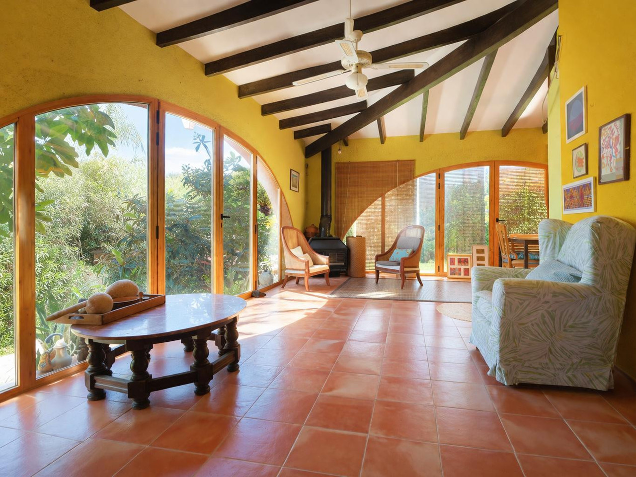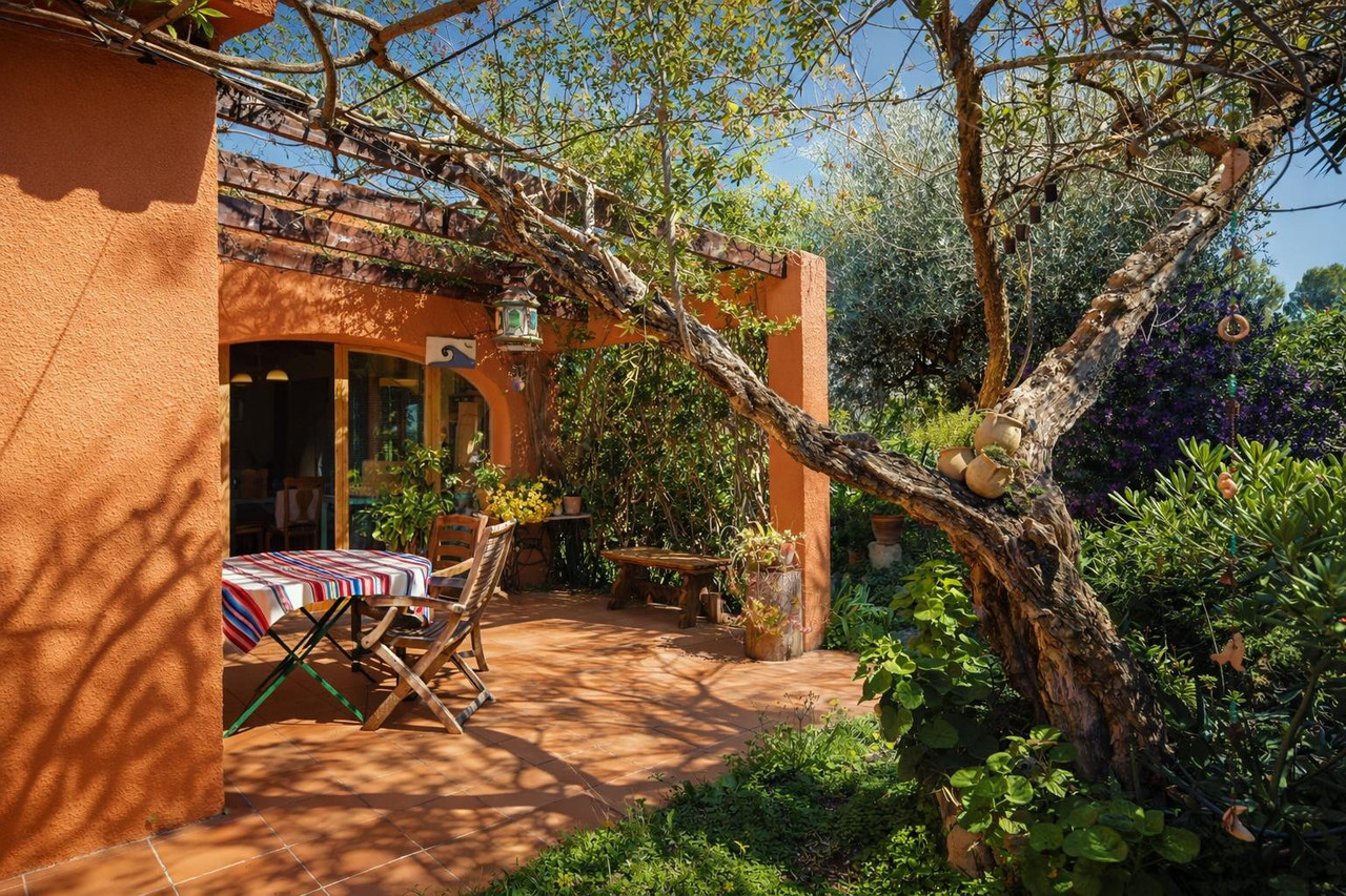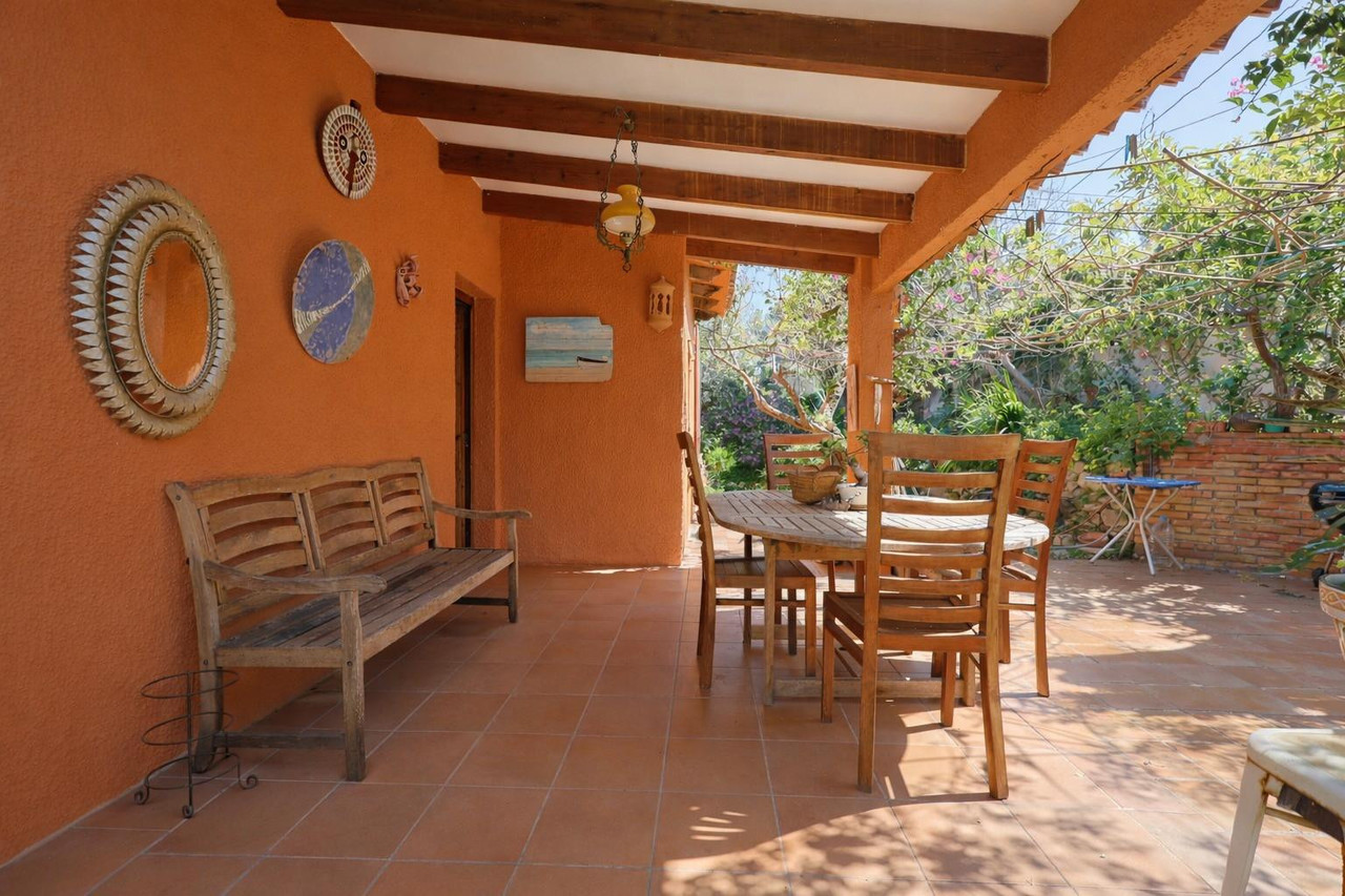 Outside, a lovely covered terrace provides the perfect spot to relax, sunbathe, or enjoy outdoor dining. The fully fenced plot ensures privacy and peace, turning this villa into a true retreat.