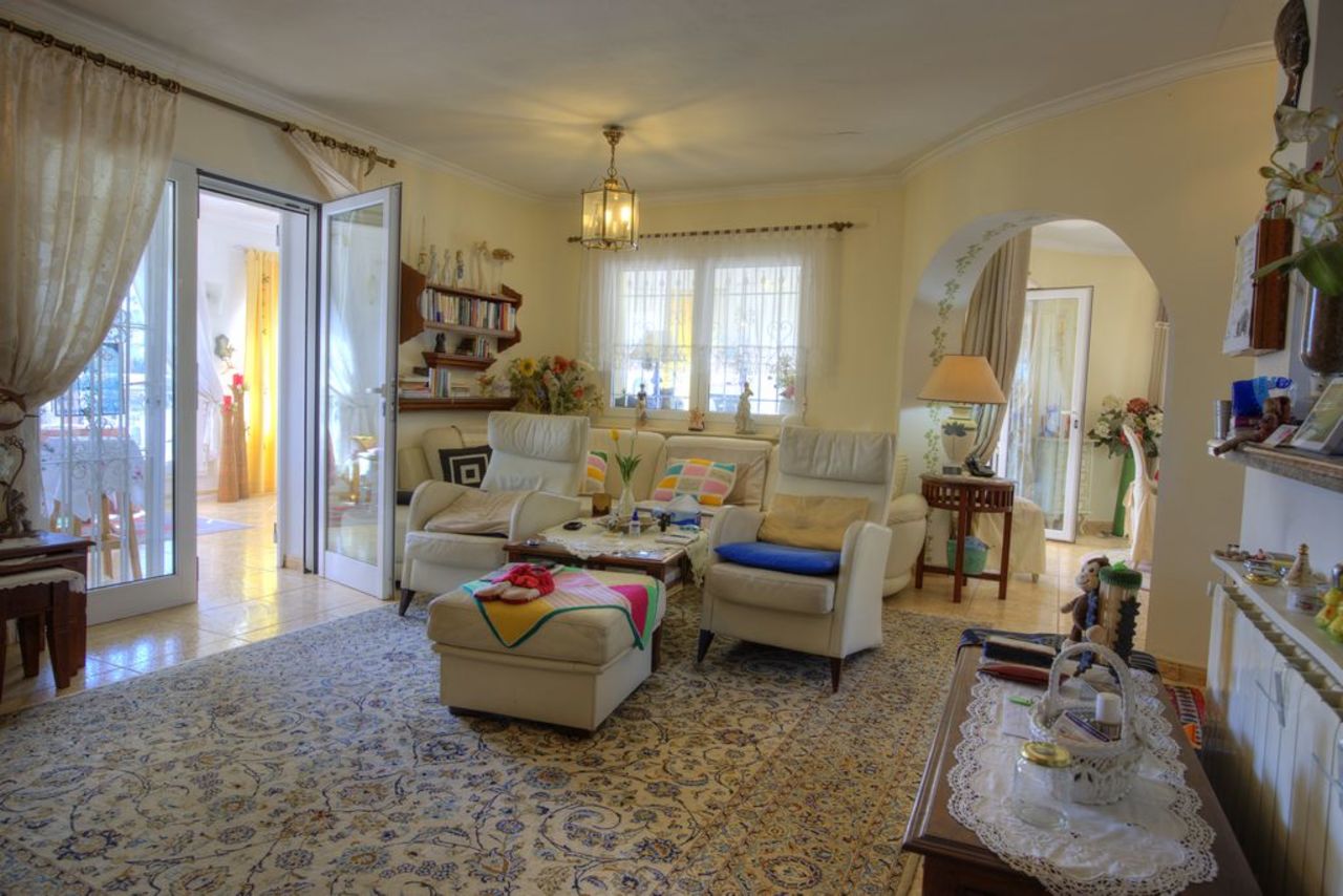 Elegant Villa in a Prime Location with Sea ViewsLocated in one of the most prestigious residential areas of Benissa Costa, just a few minutes' walk from the picturesque Cala Baladrar cove, this attractive Mediterranean-style villa offers a peaceful setting close to the sea. The quiet surroundings, combined with its prime coastal location, make this property a truly special retreat with an exceptional quality of life. Set on a generous plot of 1,049 m², the property offers approximately 264 m² of living space. A standout feature is its thoughtfully designed layout, which divides the villa into three independent living areas: the main residence, a self-contained apartment, and an additional guest suite with its own private entrance and a rooftop terrace offering beautiful sea views. This configuration provides excellent flexibility, whether for family living, hosting guests, or holiday rentals.The main living area impresses with its open-plan layout and bright, light-filled interiors. The living and dining space flows seamlessly onto the terrace, where stunning views of the Mediterranean can be enjoyed. A fully equipped kitchen, along with several comfortable bedrooms and bathrooms, completes this level. The upper guest accommodation also benefits from its own terrace with far-reaching views. The outdoor area has been carefully designed to create a relaxed, holiday-like atmosphere. A private swimming pool with adjoining sun terrace invites you to unwind, while various seating areas throughout the garden offer versatile outdoor living spaces. Additional features include a leisure or fitness area, storage and technical rooms, as well as numerous cozy corners set within the lush Mediterranean garden. Built in 2002, the villa is well maintained and presented in good overall condition, while still offering scope for modernization according to personal taste. Features include central heating, air conditioning, high-quality double glazing, fitted wardrobes, and security elements such as an alarm system and window grilles. Modern connectivity is ensured with fiber optic internet and Wi-Fi. A garage space and additional parking on the property complete this attractive offering.This villa uniquely combines Mediterranean lifestyle with intelligent design and versatile living options. It is perfectly suited as a prestigious primary residence for discerning buyers who value privacy and location, as well as an elegant holiday home with excellent relaxation potential. Thanks to the separate living units, there is also the opportunity to comfortably accommodate guests or generate attractive rental income. The combination of location, size, and layout makes this property a solid long-term investment in one of Spain's most desirable regions—a place where quality of life, tranquility, and Mediterranean charm come together in perfect harmony.